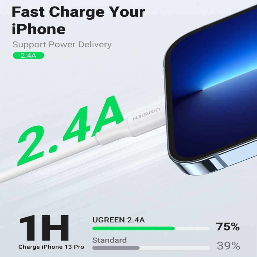 سلك شاحن يوجرين USB إلى آيفون معتمد من آبل بطول 1 م - أبيض