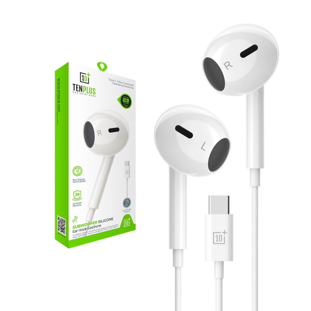سماعة اذن سلكيه بمدخل TYP-C من TEN PLUS - ابيض