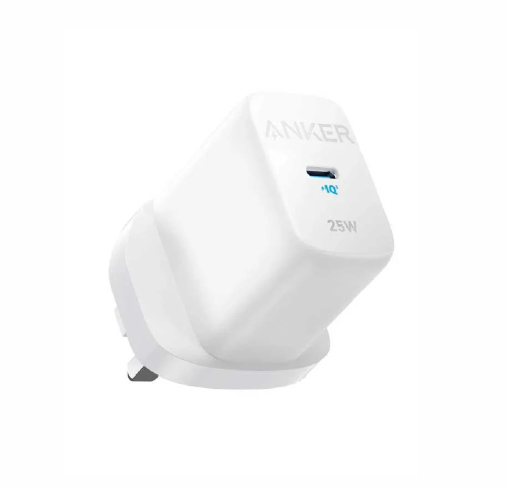 شاحن جداري انكر 25 واط USB-C سريع بمنفذ PowerIQ – أبيض