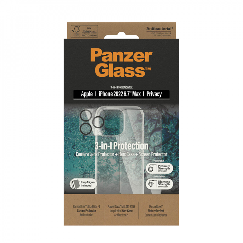 بكج بانزرجلاس واقي شاشة آيفون 14 بلس يدعم الخصوصية مع غطاء جوال شفاف وحماية للكاميرا