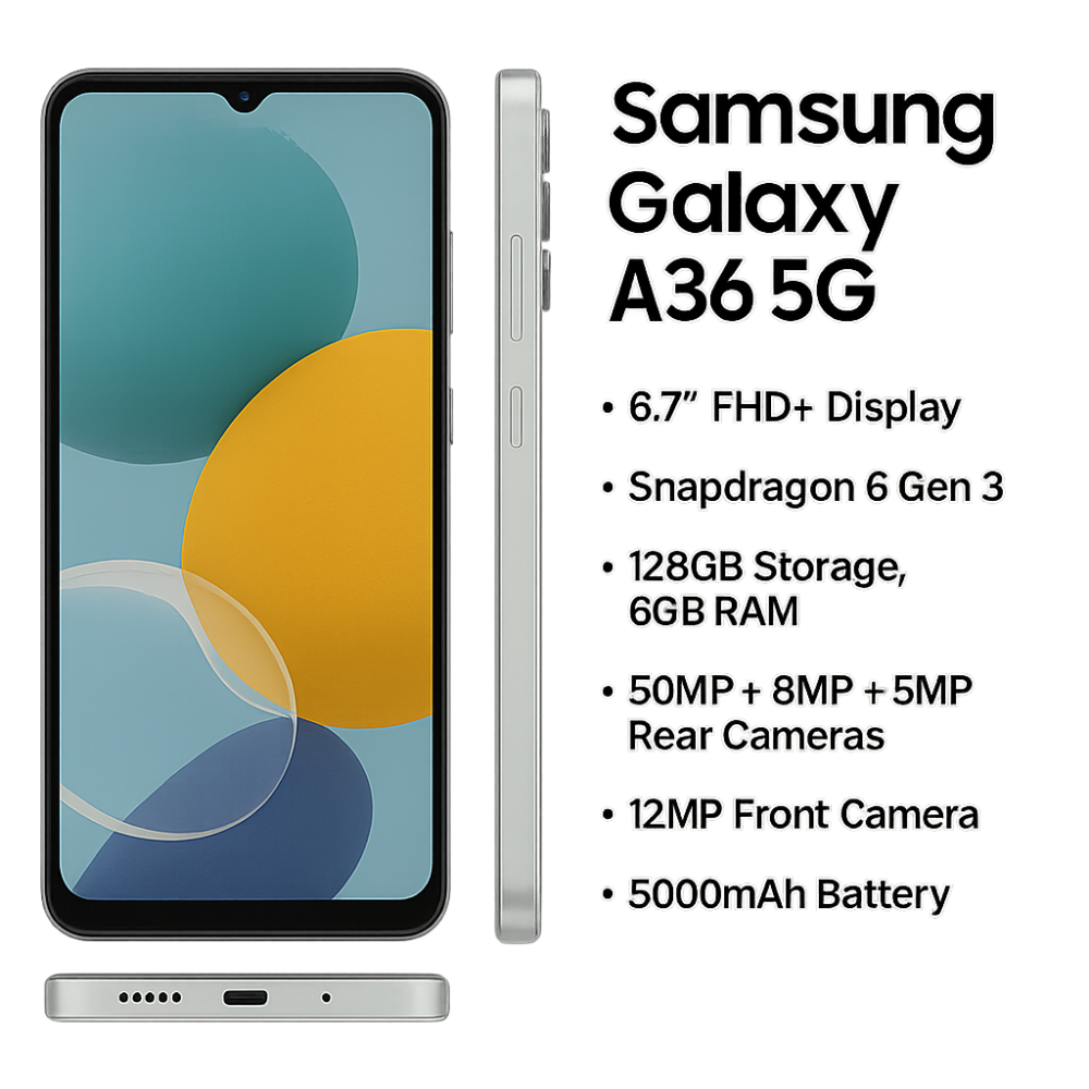 "Samsung Galaxy A36 5G – شاشة 6.7″ Super AMOLED 120Hz، كاميرا 50MP، وشحن سريع 45W"